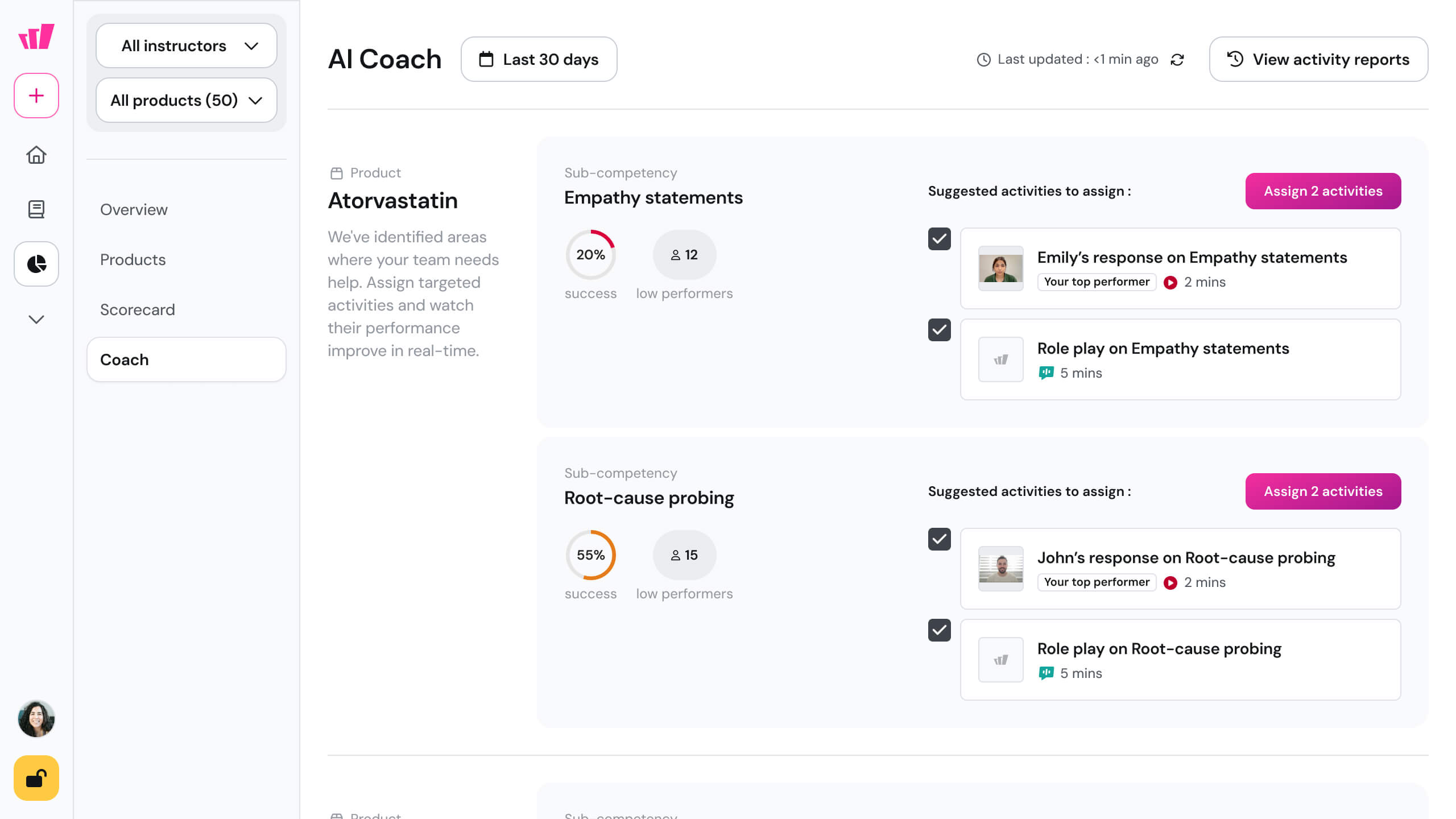 With thousands of reps and small L&D teams, managers can only provide 1-on-1 coaching once per month.